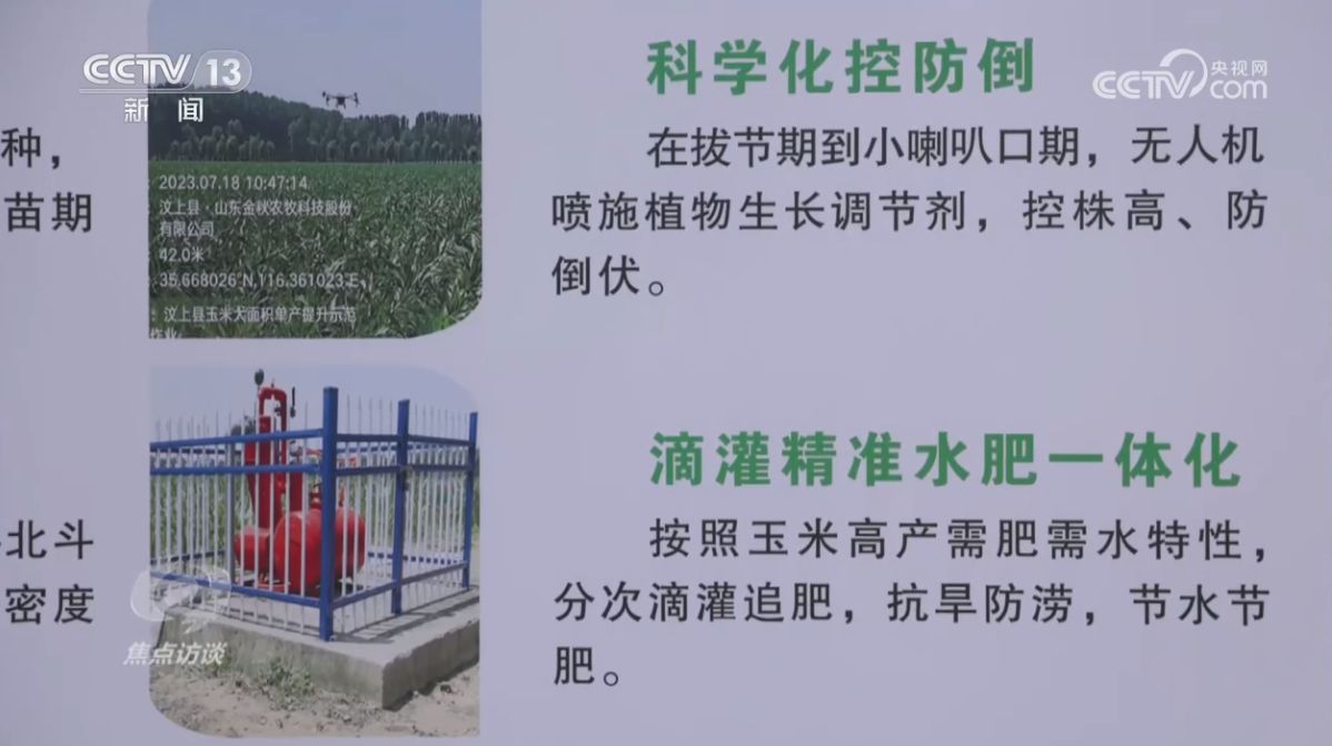 郭波波所在的汶上縣作為國家玉米單產(chǎn)提升整建制推進(jìn)縣,有5萬畝玉米單產(chǎn)提升示范區(qū),今年第一次試驗(yàn)推廣密植滴灌高產(chǎn)精準(zhǔn)調(diào)控技術(shù)。種植戶們擔(dān)心密植后的玉米出現(xiàn)營養(yǎng)不良和倒伏,這項(xiàng)技術(shù)就是要解決這個痛點(diǎn)。通過鋪在地上的滴管,對玉米進(jìn)行水肥一體化滴灌,讓玉米“少食多餐、食量均勻”,既節(jié)肥節(jié)水,又能補(bǔ)充足夠的營養(yǎng),從而增加玉米的抗倒伏能力。