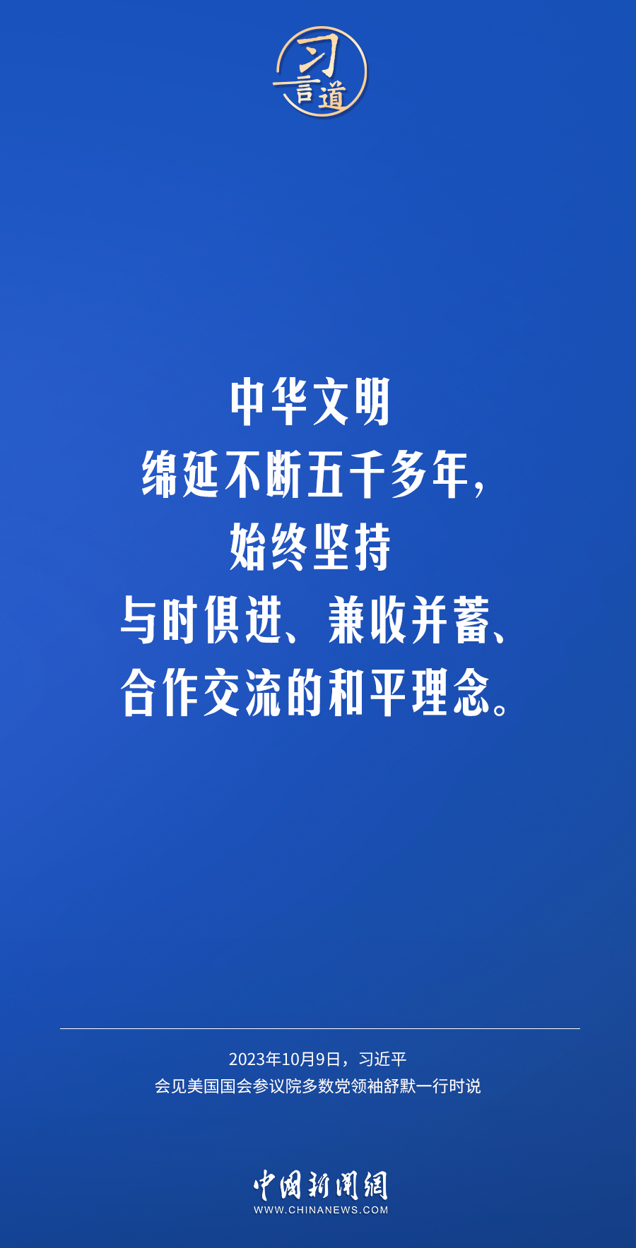10月9日下午,國家主席習(xí)近平在人民大會(huì)堂會(huì)見美國國會(huì)參議院多數(shù)黨領(lǐng)袖舒默率領(lǐng)的美國國會(huì)參議院兩黨代表團(tuán)。習(xí)近平指出——