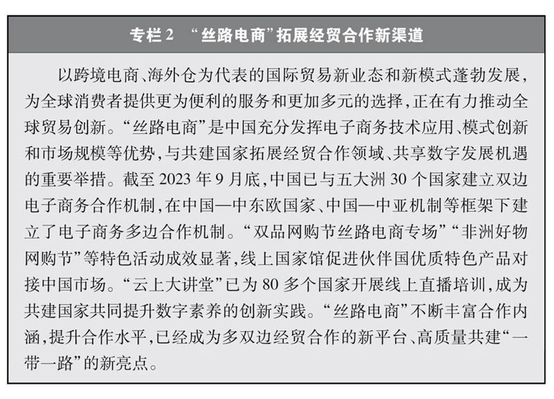 “數(shù)字絲綢之路”建設(shè)亮點紛呈。共建國家加強數(shù)字領(lǐng)域的規(guī)則標(biāo)準(zhǔn)聯(lián)通,推動區(qū)域性數(shù)字政策協(xié)調(diào),攜手打造開放、公平、公正、非歧視的數(shù)字發(fā)展環(huán)境。截至2022年底,中國已與17個國家簽署“數(shù)字絲綢之路”合作諒解備忘錄,與30個國家簽署電子商務(wù)合作諒解備忘錄,與18個國家和地區(qū)簽署《關(guān)于加強數(shù)字經(jīng)濟領(lǐng)域投資合作的諒解備忘錄》,提出并推動達成《全球數(shù)據(jù)安全倡議》《“一帶一路”數(shù)字經(jīng)濟國際合作倡議》《中國-東盟關(guān)于建立數(shù)字經(jīng)濟合作伙伴關(guān)系的倡議》《中阿數(shù)據(jù)安全合作倡議》《“中國+中亞五國”數(shù)據(jù)安全合作倡議》《金磚國家數(shù)字經(jīng)濟伙伴關(guān)系框架》等合作倡議,牽頭制定《跨境電商標(biāo)準(zhǔn)框架》。積極推進數(shù)字基礎(chǔ)設(shè)施互聯(lián)互通,加快建設(shè)數(shù)字交通走廊,多條國際海底光纜建設(shè)取得積極進展,構(gòu)建起130套跨境陸纜系統(tǒng),廣泛建設(shè)5G基站、數(shù)據(jù)中心、云計算中心、智慧城市等,對傳統(tǒng)基礎(chǔ)設(shè)施如港口、鐵路、道路、能源、水利等進行數(shù)字化升級改造,“中國-東盟信息港”、“數(shù)字化中歐班列”、中阿網(wǎng)上絲綢之路等重點項目全面推進,“數(shù)字絲路地球大數(shù)據(jù)平臺”實現(xiàn)多語言數(shù)據(jù)共享。空間信息走廊建設(shè)成效顯著,中國已建成連接南亞、非洲、歐洲和美洲的衛(wèi)星電信港,中巴(西)地球資源系列遙感衛(wèi)星數(shù)據(jù)廣泛應(yīng)用于多個國家和領(lǐng)域,北斗三號全球衛(wèi)星導(dǎo)航系統(tǒng)為中歐班列、船舶海運等領(lǐng)域提供全面服務(wù);中國與多個共建國家和地區(qū)共同研制和發(fā)射通信或遙感衛(wèi)星、建設(shè)衛(wèi)星地面接收站等空間基礎(chǔ)設(shè)施,依托聯(lián)合國空間科技教育亞太區(qū)域中心(中國)為共建國家培養(yǎng)大量航天人才,積極共建中海聯(lián)合月球和深空探測中心、中阿空間碎片聯(lián)合觀測中心、瀾湄對地觀測數(shù)據(jù)合作中心、中國東盟衛(wèi)星應(yīng)用信息中心、中非衛(wèi)星遙感應(yīng)用合作中心,利用高分衛(wèi)星16米數(shù)據(jù)共享服務(wù)平臺、“一帶一路”典型氣象災(zāi)害分析及預(yù)警平臺、自然資源衛(wèi)星遙感云服務(wù)平臺等服務(wù)于更多共建國家。