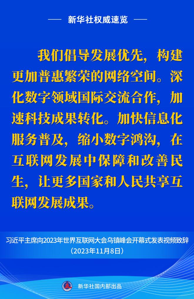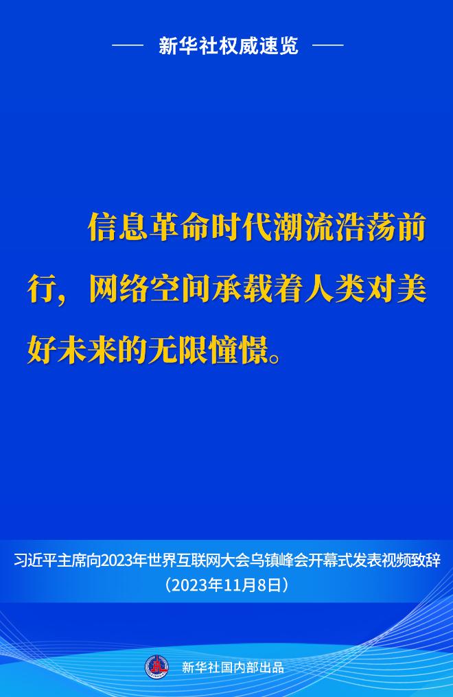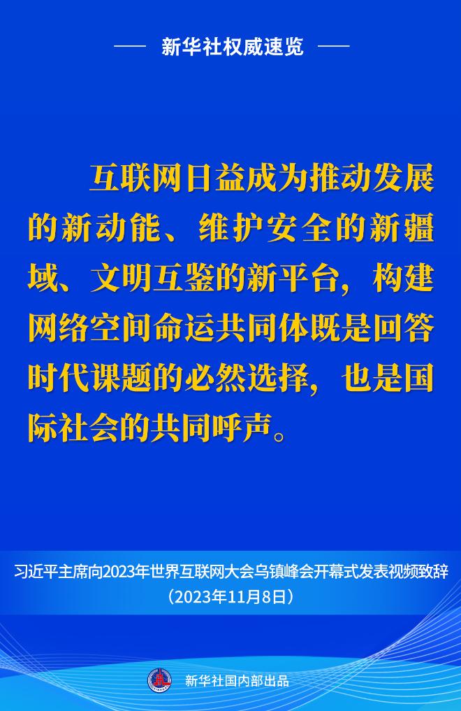 新華社權威速覽丨習近平主席向2023年世界互聯(lián)網(wǎng)大會烏鎮(zhèn)峰會開幕式視頻致辭金句