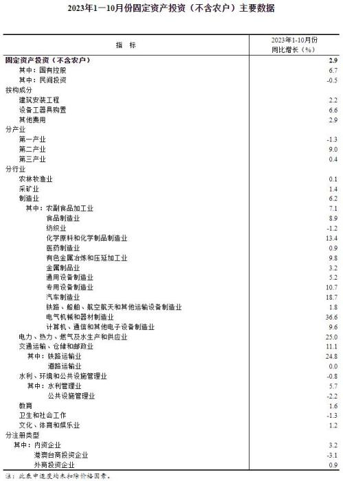 國(guó)家統(tǒng)計(jì)局:1—10月份全國(guó)固定資產(chǎn)投資增長(zhǎng)2.9%