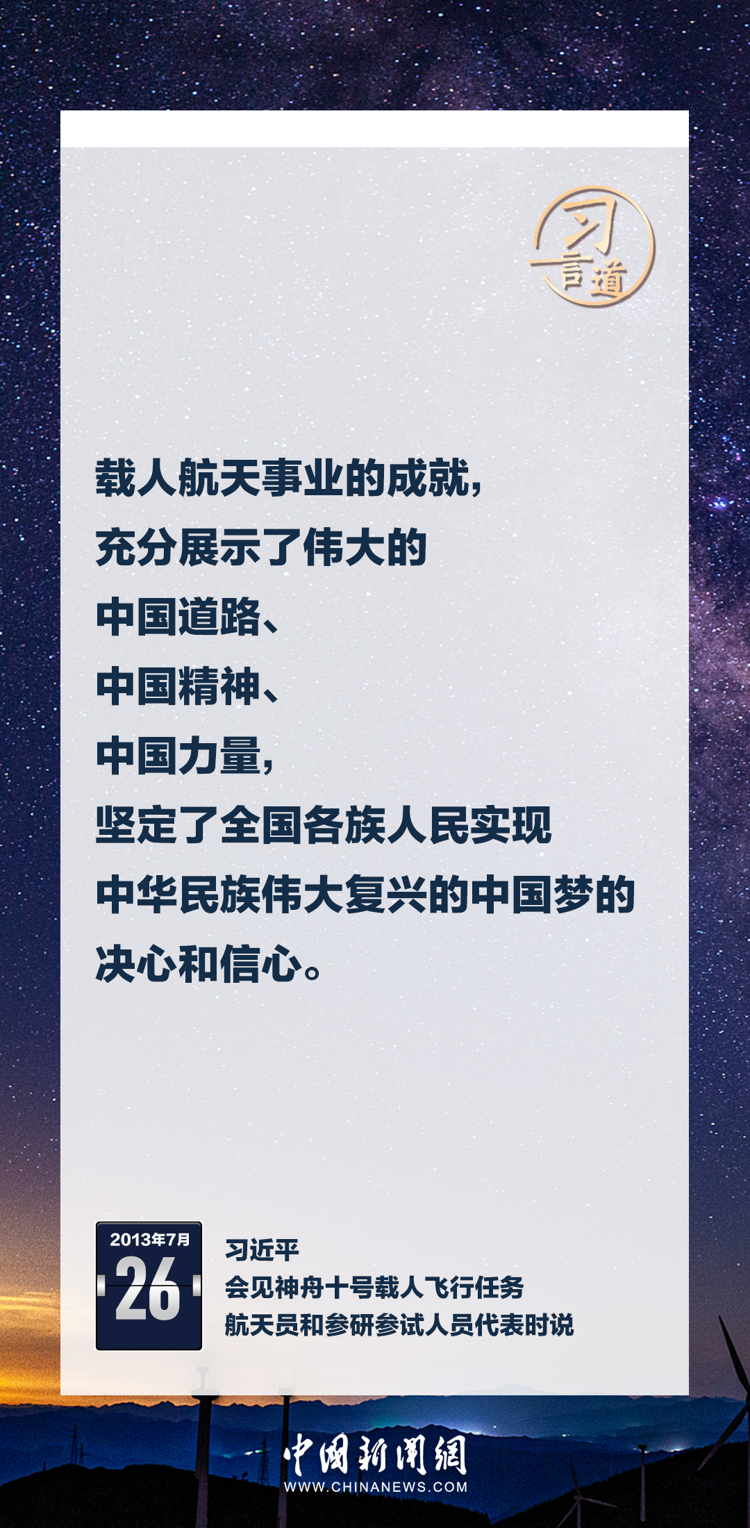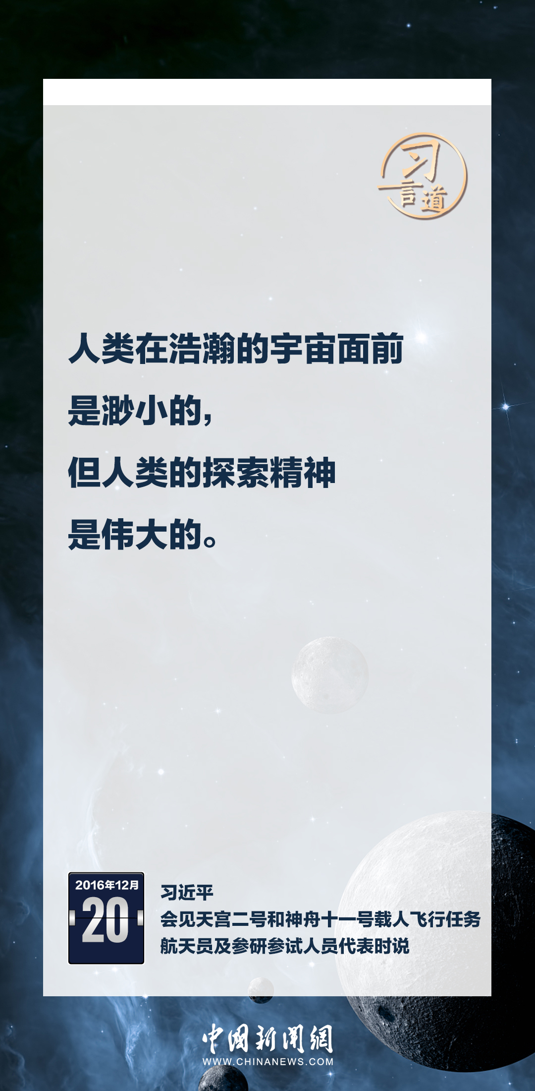 建設(shè)航天強國要靠一代代人接續(xù)奮斗。在不同場合,習(xí)近平總書記頻頻提及航天精神,激勵一代代中國人不斷奮進、筑夢太空。