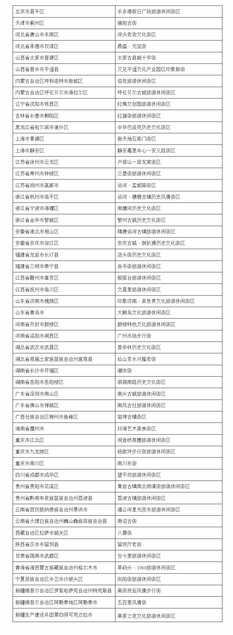 文旅部確定第三批國家級旅游休閑街區(qū)名單