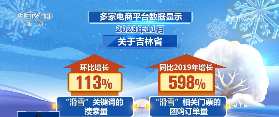 多家電商平臺(tái)數(shù)據(jù)顯示,2023年11月,關(guān)于吉林省“滑雪”關(guān)鍵詞的搜索量環(huán)比增長(zhǎng)113%,“滑雪”相關(guān)門(mén)票的團(tuán)購(gòu)訂單量同比2019年增長(zhǎng)了598%。