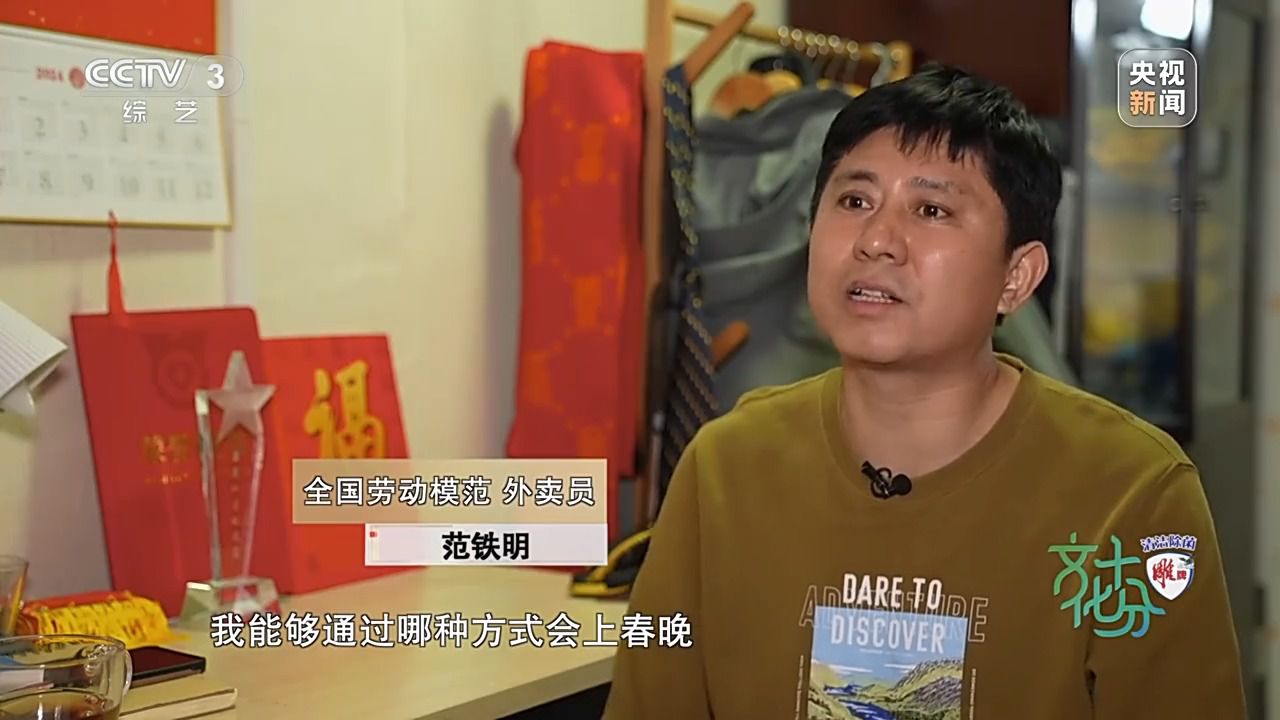 全國(guó)勞動(dòng)模范 外賣(mài)員 范鐵明:2023年,我被評(píng)為全國(guó)最美外賣(mài)配送員,這個(gè)獎(jiǎng)項(xiàng),不單純是給我個(gè)人的,實(shí)際上是對(duì)新就業(yè)群體,對(duì)騎手的一個(gè)認(rèn)可。根本就沒(méi)有想到我能夠通過(guò)哪種方式會(huì)上春晚,因?yàn)槲矣植皇菍?zhuān)業(yè)的演職人員,當(dāng)時(shí)我并不是很相信,我們分配的是《勞動(dòng)最光榮》,它是一個(gè)通過(guò)動(dòng)畫(huà)片的形式,就是我們兒時(shí)都會(huì)看一些動(dòng)畫(huà)片,動(dòng)畫(huà)片里都會(huì)有一些主人公,比如說(shuō)《黑貓警長(zhǎng)》當(dāng)中的黑貓警長(zhǎng),《大鬧天宮》里的孫悟空,包括《小貓釣魚(yú)》里頭的貓媽媽?zhuān)?dāng)然都是我們當(dāng)時(shí)崇拜的一個(gè)對(duì)象,最終我們成為或即將成為他們。
