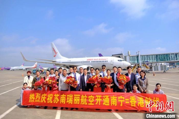 2月19日,南寧—香港航線恢復(fù)定期運營。南寧機場供圖