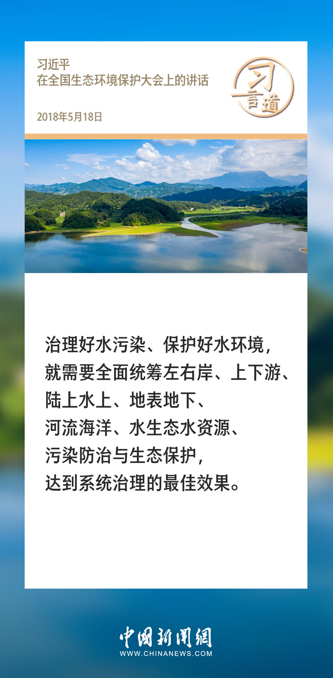 3月22日是第32屆“世界水日”。水是生存之本、文明之源。黨的十八大以來,習(xí)近平總書記就治水、護(hù)水、節(jié)水、用水作出一系列重要論述。