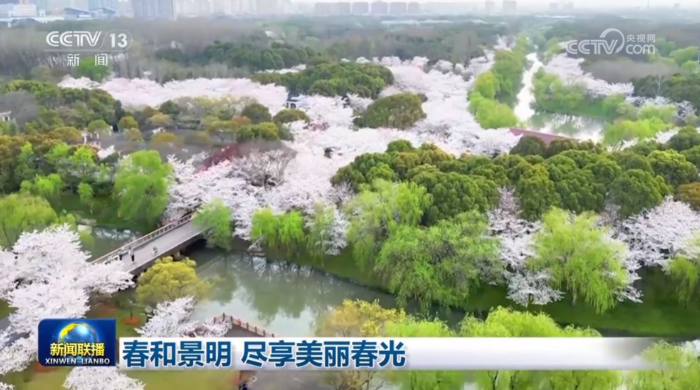在上海寶山區(qū),公園里迎來(lái)盛花期的櫻花,美不勝收,這片櫻花的海洋吸引人們徜徉其中、駐足拍照。在陜西西安,這條兩公里長(zhǎng)的道路兩旁,數(shù)百棵櫻花樹競(jìng)相綻放,延綿成一片花海,市民和車輛從中經(jīng)過,享受著古城春天這抹浪漫的色彩。在河北滄州,梨花盛開,雪白的梨花令人陶醉,眾多游客前來(lái)感受春日美景。