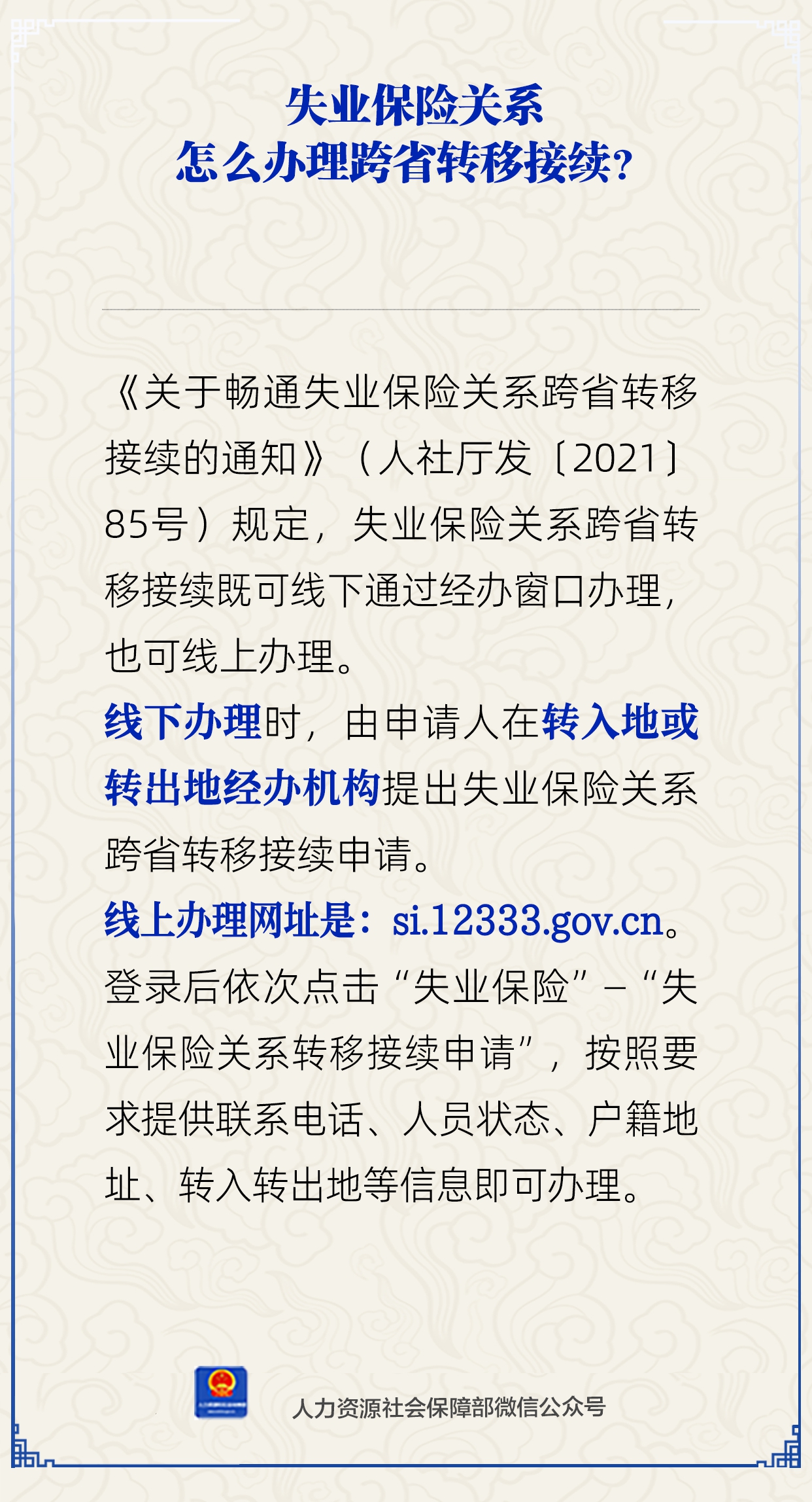 中新網(wǎng)5月6日電 據(jù)人力資源和社會保障部微信公眾號消息,失業(yè)保險關(guān)系如何跨省轉(zhuǎn)移接續(xù)?就這一問題,人力資源和社會保障部回應(yīng)稱,《關(guān)于暢通失業(yè)保險關(guān)系跨省轉(zhuǎn)移接續(xù)的通知》(人社廳發(fā)[2021]85號)規(guī)定,失業(yè)保險關(guān)系跨省轉(zhuǎn)移接續(xù)既可線下通過經(jīng)辦窗口辦理,也可線上辦理。