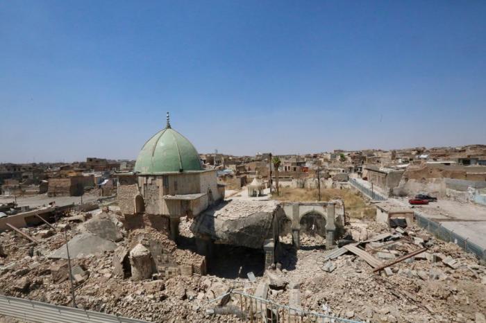 2019年7月4日,在伊拉克摩蘇爾老城拍攝的努爾清真寺。新華社發(fā)(哈利勒·達(dá)伍德攝)