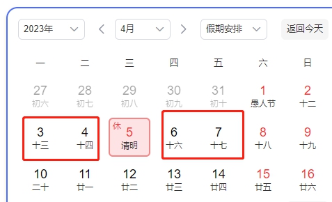 與往年不同,2023年清明節(jié)放假1天不調(diào)休。如果計劃長途旅游,則需要適當(dāng)請假。