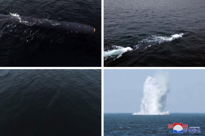 據(jù)報道,4月4日下午,朝鮮核無人潛水攻擊艇“海嘯—2”型在咸鏡南道金野郡加津港投入試驗,沿著在朝鮮東海設(shè)定的模擬1000公里距離的橢圓及八字形航線潛航71小時6分,4月7日下午到達咸鏡南道端川市龍臺港前海預(yù)定目標水域,試驗用戰(zhàn)斗部在水下成功爆炸。