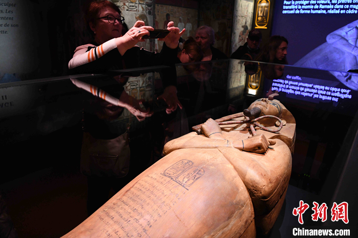 圖為觀展者在給拉美西斯二世石棺拍照。 中新社記者 李洋 攝