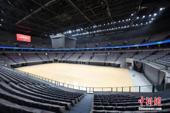 資料圖:圖為工作人員在東安湖體育公園的多功能體育館內忙碌。 中新社記者 張浪 攝