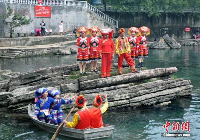 壯族民眾身著民族服飾賽山歌。黃艷梅 攝