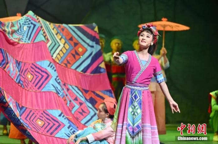 現(xiàn)代彩調(diào)劇《新劉三姐》在廣西民族劇院上演。俞靖 攝