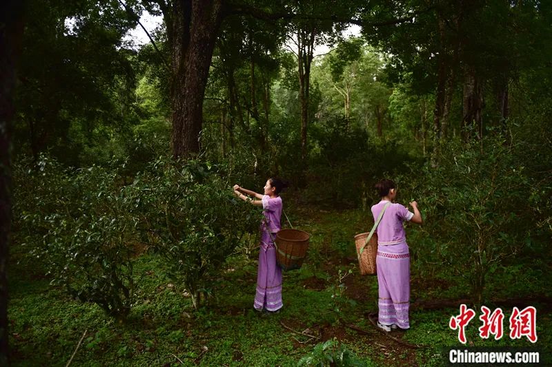 2016年5月,云南普洱,當?shù)卮迕裨诰斑~山古茶園采茶,這里的茶樹樹齡大多在百年以上。劉冉陽 攝