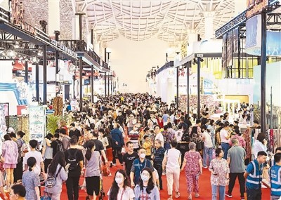 在日前舉行的第三屆中國國際消費品博覽會上,來自全國各地的消費者品鑒全球精品。