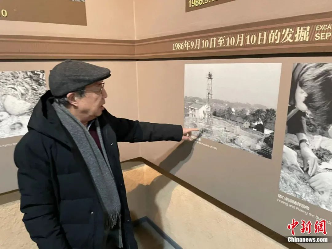 王明達在良渚遺址公園內(nèi)回憶當(dāng)年的發(fā)掘故事。張煜歡攝