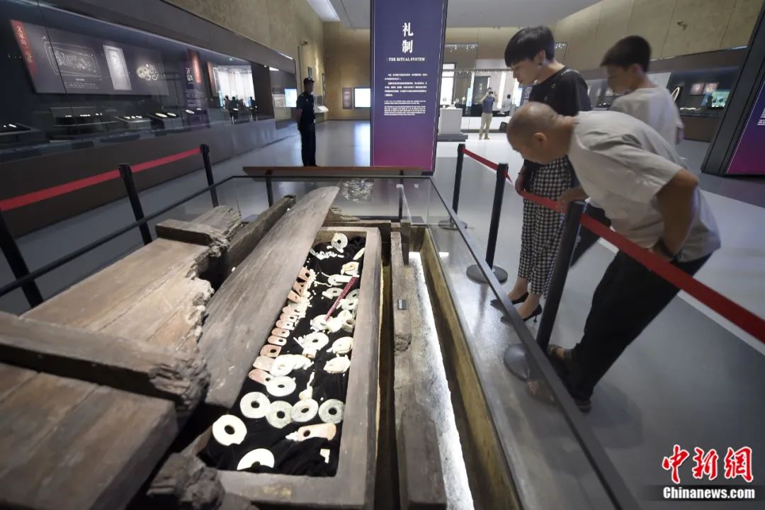 觀眾參觀反山遺址14號墓葬復(fù)原場景。李忠 攝