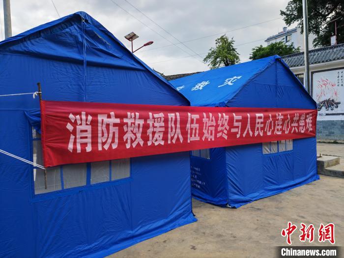 圖為地震現(xiàn)場(chǎng)搭起的的應(yīng)急救災(zāi)帳篷?!≡颇鲜∠谰仍傟?duì)供圖