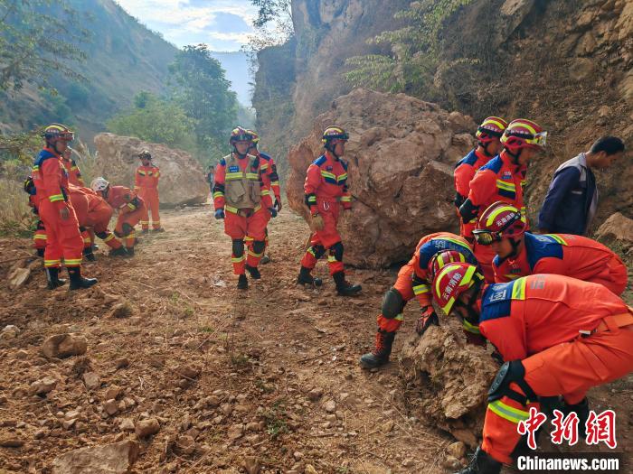 圖為消防指戰(zhàn)員正在地震現(xiàn)場(chǎng)開(kāi)展救援?!≡颇鲜∠谰仍傟?duì)供圖