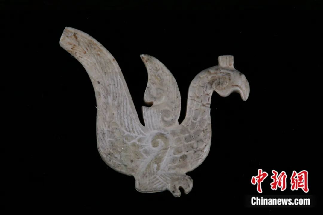 中新社記者:請介紹一下玉飛鳳的出土過程。玉飛鳳的特色、工藝、文化意義及其珍貴之處體現(xiàn)在哪里?