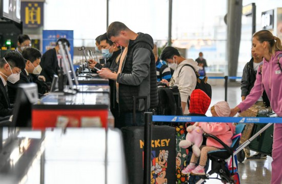 4月25日,南航工作人員在為旅客辦理值機手續(xù)。4月25日,一架中國南方航空CZ6015航班從烏魯木齊地窩堡國際機場起飛,前往土庫曼斯坦首都阿什哈巴德。南航新疆分公司介紹,這是目前國內恢復的首條飛往土庫曼斯坦的國際航線。該航線恢復后,標志著我國新疆與中亞五國航線全面恢復。(新華社記者 王菲 攝)
