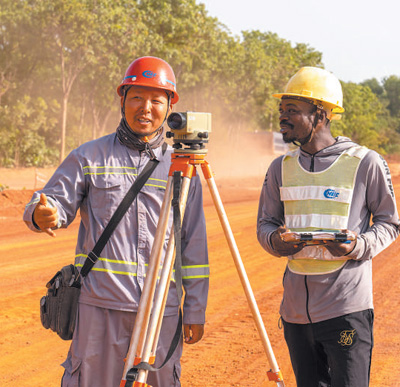 4月13日,中國和科特迪瓦工作人員在科北部公路項目施工現(xiàn)場一起工作。