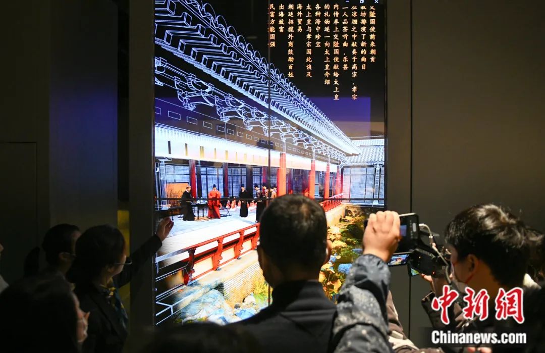 2022年11月14日,浙江杭州,南宋德壽宮遺址博物館內(nèi)以數(shù)字化技術(shù)展示的南宋德壽宮樣貌吸引參觀者。王剛 攝