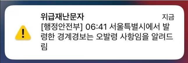 7時3分,首爾市民再次收到消息:“首爾特別市發(fā)布的警戒警報屬于誤發(fā)事項,特此通知。”
