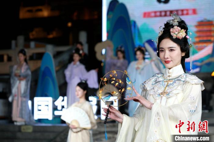 今年4月22日,農(nóng)歷三月初三“上巳節(jié)”,一場(chǎng)華服大秀在超然樓前舉行。 中新社記者 梁犇 攝