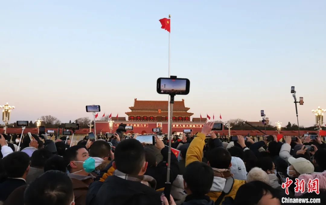 2023年1月1日,民眾在北京天安門廣場(chǎng)觀看新年首場(chǎng)升旗儀式。郭海鵬 攝