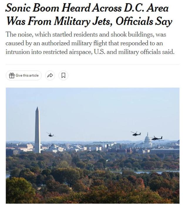 當?shù)貢r間4日,一架塞斯納輕型飛機疑似闖入華盛頓上空,美軍F-16噴氣式戰(zhàn)斗機緊急起飛高速追擊,并在美國首都上空引發(fā)音爆。期間,美軍試圖與塞斯納飛機上的飛行員建立聯(lián)系。