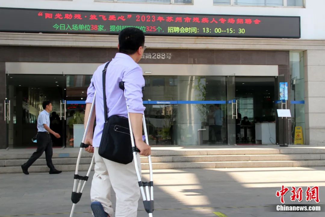求職者在蘇州市殘疾人專場招聘會上尋找職位。王建康 攝