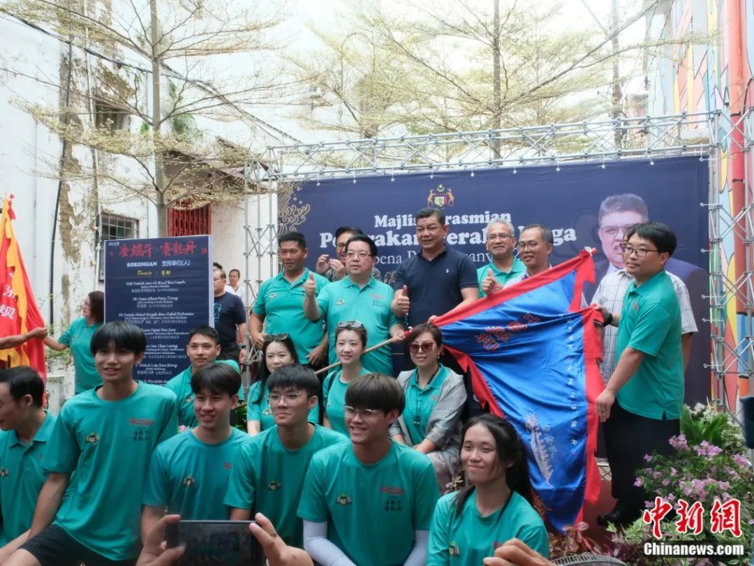 龍舟文化受到馬六甲政府支持。圖為2023年游龍舟活動(dòng)6月18日開幕,州行政議員代表州首席部長出席并為參與龍舟隊(duì)授旗。陳悅 攝
