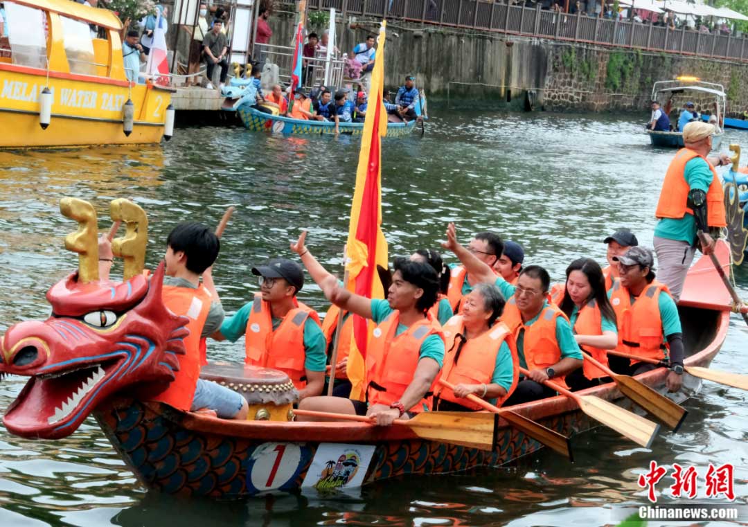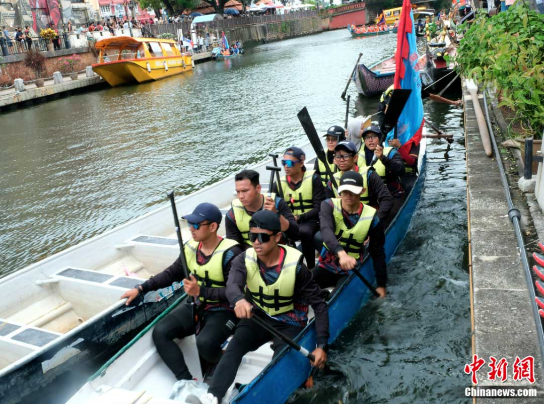 龍舟文化受到馬六甲和馬來西亞各族民眾歡迎。圖為2023年游龍舟活動(dòng)6月18日開幕,很多參賽隊(duì)都由馬來裔或當(dāng)?shù)胤侨A裔民眾組成。陳悅 攝
