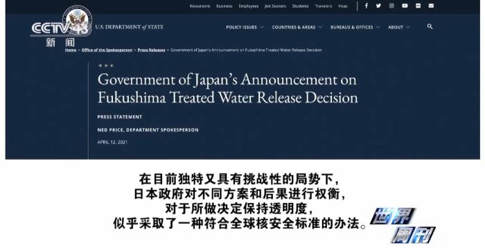 而就在日本政府公布排海計劃的前一天,2021年4月12日,美國國務院在官網(wǎng)發(fā)表一份相關聲明,措辭可謂用心良苦: