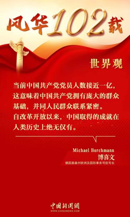 中新網(wǎng)7月5日電 (陳天浩)2023年是中國共產(chǎn)黨建黨102周年。近日,德國黑森州歐洲及國際事務(wù)司前司長博喜文(Michael Borchmann)在接受中國新聞網(wǎng)專訪時表示,中國共產(chǎn)黨的成功離不開同人民群眾的緊密聯(lián)系。
