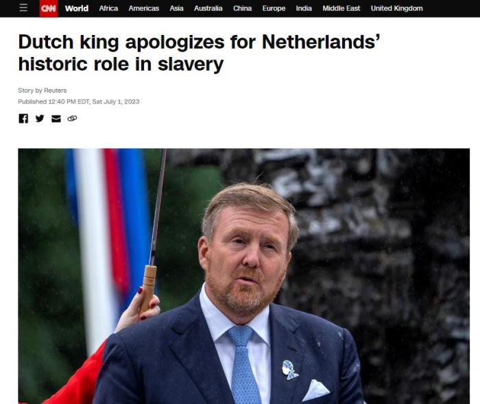 據(jù)美國有線電視新聞網(wǎng)(CNN)報道,荷蘭國王威廉-亞歷山大當(dāng)天出席了紀(jì)念荷蘭廢除奴隸制160周年的儀式,并作出了上述表態(tài)。