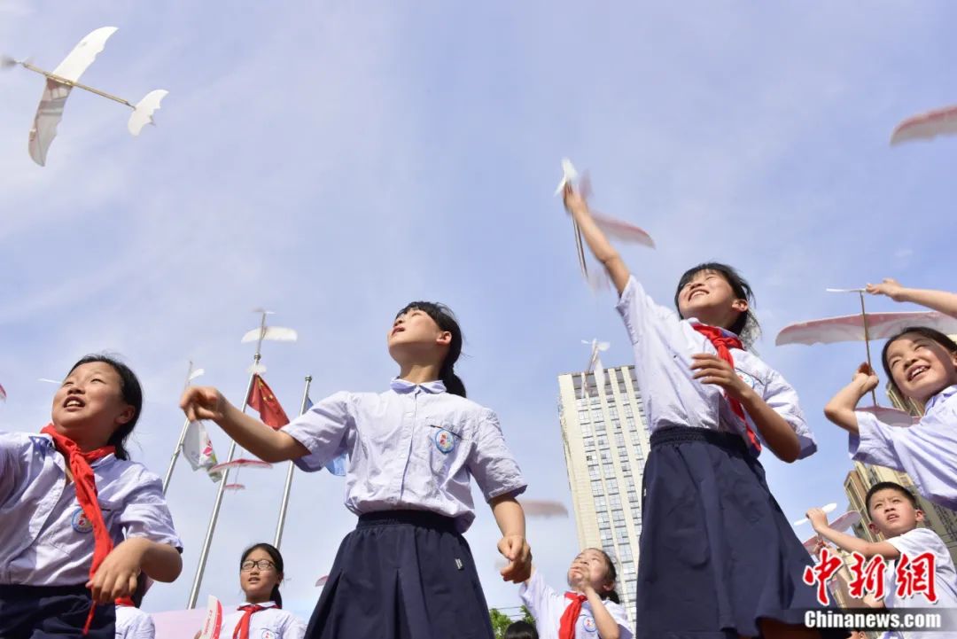 安徽合肥小學(xué)生放飛飛機模型。葛宜年 攝