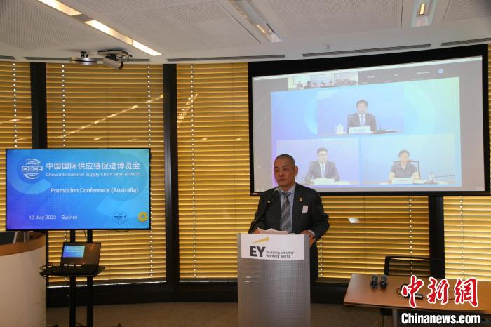 中新社悉尼7月10日電 (記者 顧時宏)首屆中國國際供應鏈促進博覽會(鏈博會)澳大利亞站路演活動10日下午在悉尼以線上線下相結合的方式舉行。