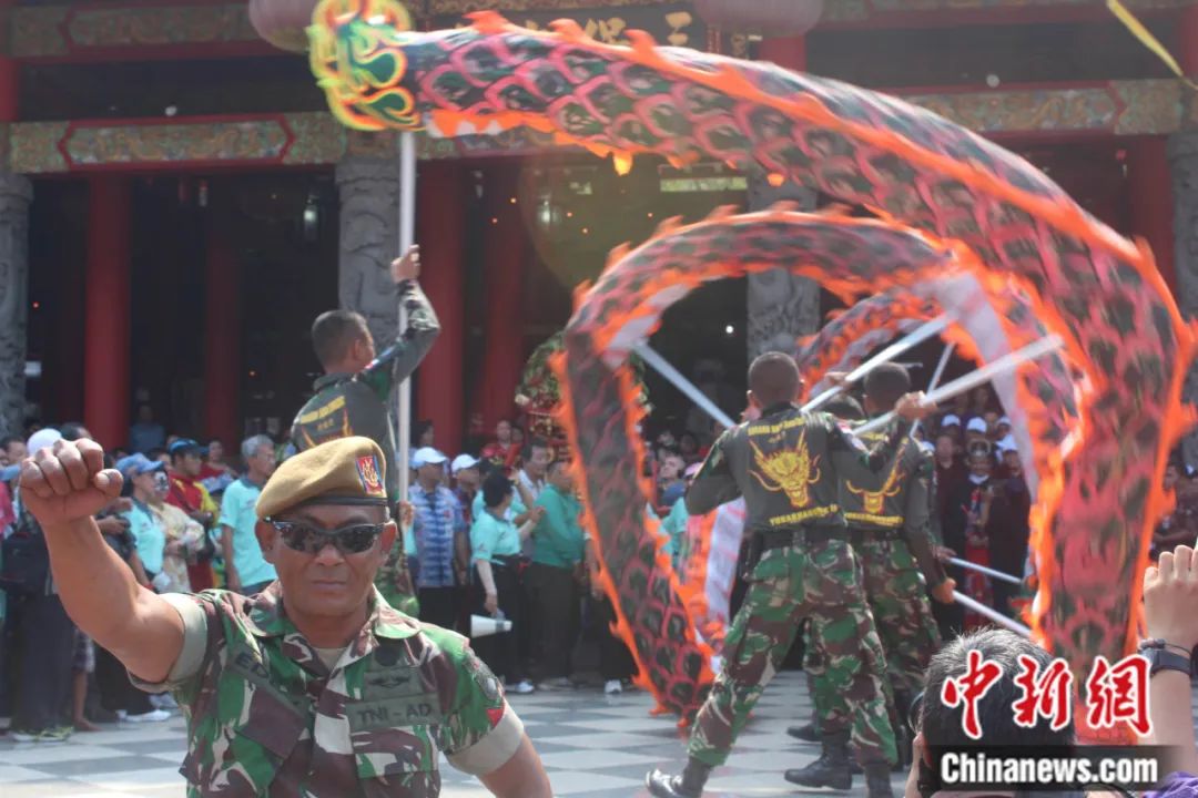 舞龍舞獅作為中國民間傳統(tǒng)文化,其藝術形式已成為世界通行的“文化語言”。印尼軍方一些連隊也喜歡舞龍運動,因為舞龍不僅可培養(yǎng)勇敢和團隊精神,還能讓士兵們步伐靈活、動作協(xié)調(diào)一致,同時又具有很強的娛樂性。去年10月,印尼龍獅運動聯(lián)合總會在日惹舉辦了印尼全國龍獅大賽,印尼軍方派出多支代表隊參賽。今年3月,北蘇門答臘省龍獅分會在棉蘭舉辦國際舞獅大賽,當?shù)剀姺揭才沙鑫椠堦牭綀霰硌荨?/p>