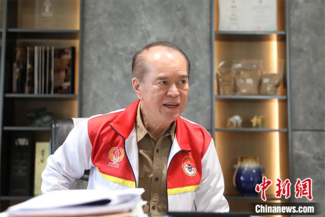 印尼龍獅運動聯(lián)合會總主席丘昌仁在雅加達接受中新社“東西問”欄目專訪。李志全 攝