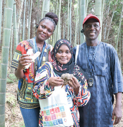 6月18日,聯(lián)合國學(xué)習(xí)團(tuán)在福建省南平市順昌縣參觀林下菌草栽培竹蓀。