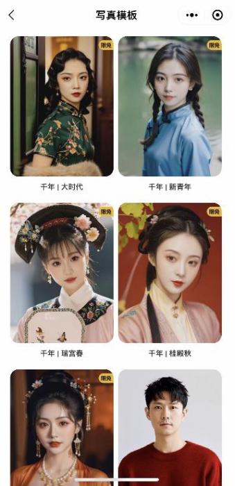 經(jīng)過(guò)一個(gè)下午的漫長(zhǎng)等待,終于可以挑選自己喜愛(ài)的,堪比天真藍(lán)、海馬體照相館級(jí)別的質(zhì)感寫(xiě)真了。從微信公眾號(hào)公開(kāi)的33款模板來(lái)看,女性肖像模板豐富,有27款,包括清歡、奢感光、都市正裝等,男性模板僅6種,比如白衣、正裝、默片等。