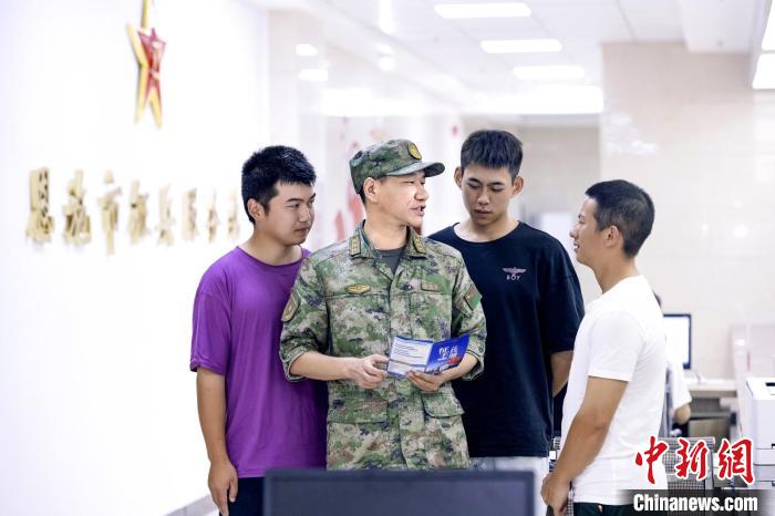陳剛果在恩施市征兵服務(wù)站與應(yīng)征青年交談。粟毅 攝