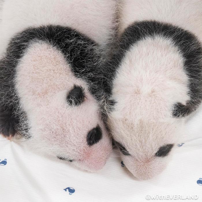 據(jù)報(bào)道,從公開的照片來看,這對大熊貓寶寶已開始慢慢長胖,眼睛、耳朵、肩膀、胳膊、腿周圍,顯現(xiàn)出獨(dú)特的黑色斑紋。