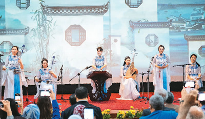 身著中國(guó)傳統(tǒng)服飾,景德鎮(zhèn)瓷樂隊(duì)的姑娘們自信地登上舞臺(tái),用瓷甌、瓷二胡、瓷琵琶、瓷笛,帶來令人耳目一新的瓷樂合奏,為當(dāng)?shù)赜^眾獻(xiàn)上一場(chǎng)極具中國(guó)傳統(tǒng)意蘊(yùn)的音畫大賞。