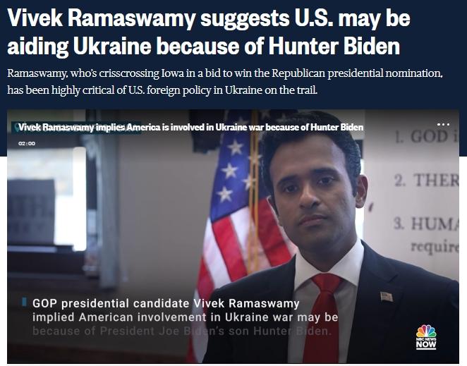 據(jù)報道,拉馬斯瓦米在艾奧瓦州競選活動中的發(fā)言稱,“美國武裝力量的目標(biāo)是推進(jìn)美國利益、保護(hù)祖國,而不是無目的地卷入一場危機(jī),且該危機(jī)有可能是為償還烏克蘭能源企業(yè)布里斯馬公司給美國總統(tǒng)拜登家庭成員500萬美元私人賄賂。”
